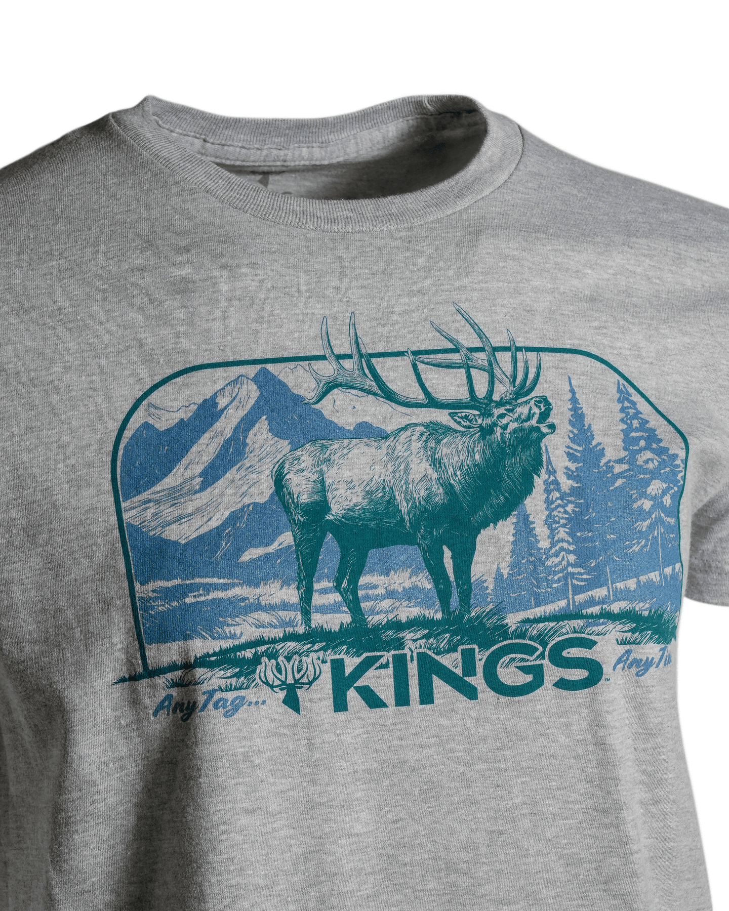 Front Graphic: Kings logo with bugling herd bull elk graphic