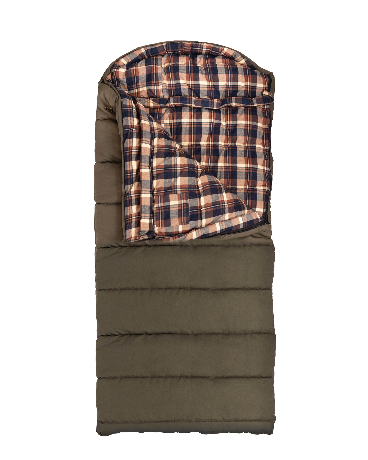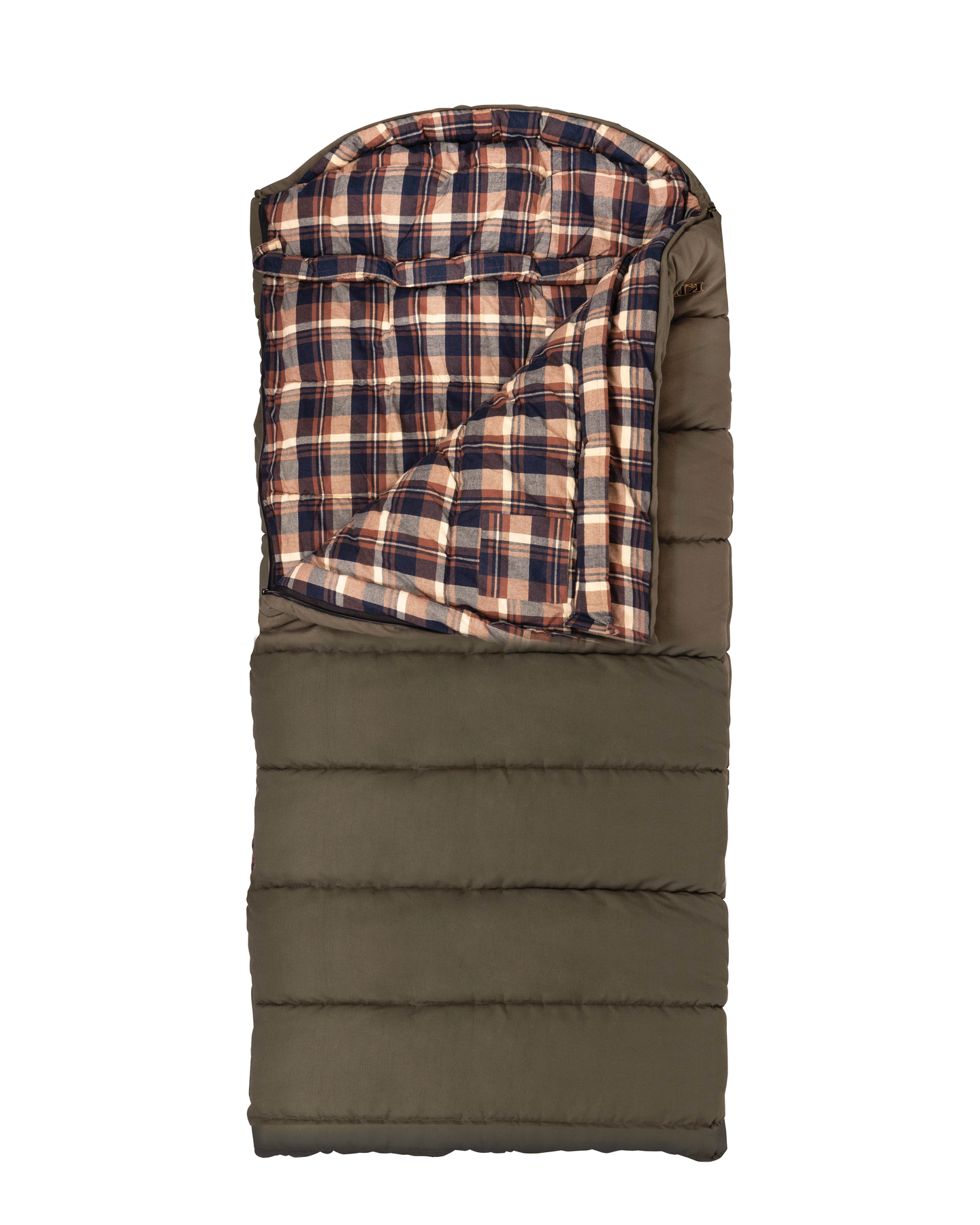 This plush bag is made for warmth and comfort with the 100% cotton flannel liner and tough canvas outer shell along with SuperLoft Elite™ 4–Channel Hollow Fiber fill that keeps you toasty on those cold nights. This roomy bag is available in both left and right zippers so you can zip two bags together for a great his and her combo. Handy carrying canvas bag and King's Desert Shadow Camo accent gives this bag a unique look combined with great style and performance for extreme cold conditions.