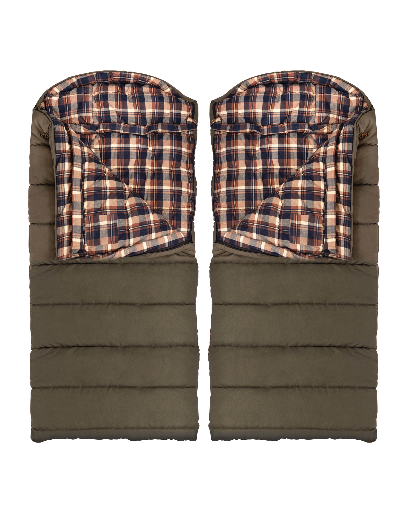Enjoy the outdoors in comfort with our Hunter Series -35 Degree Sleeping Bags. This bundle offers 1 left zippered bag and 1 right zippered bag - built to zip together to create one large bag. Bundled together for an extra savings of $50.