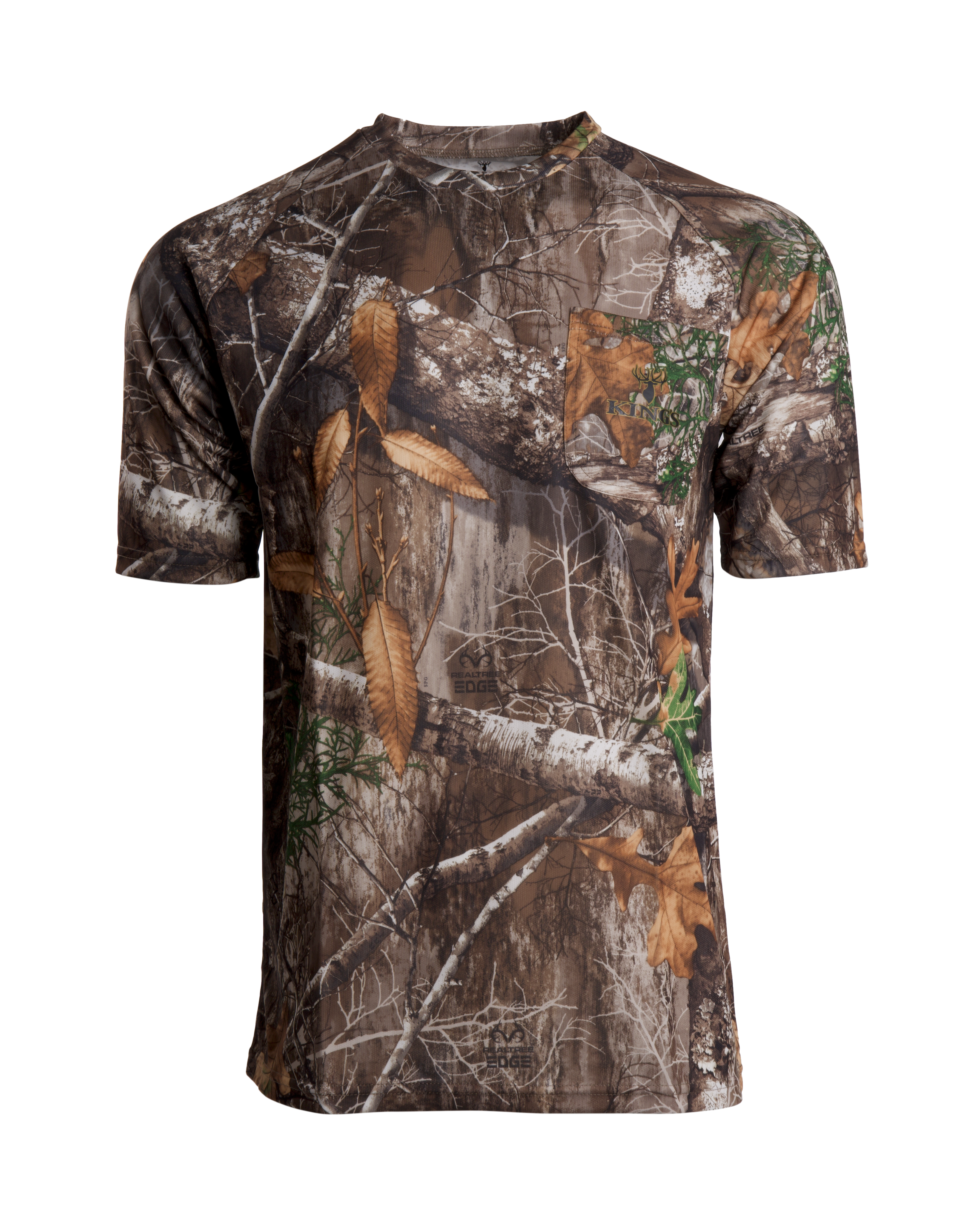 The Hunter Series Short Sleeve Tee is perfect for early season archery or a base layer to keep dry and fully concealed. A quick-dry, 100% polyester fabric with a birds-eye texture enhances its natural wicking properties keeping you dry and comfortable. Includes a large pocket at the left chest.