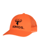 King's Logo Blaze Snapback Cap built by Richardson Caps. Cotton twill front panels with embroidered King's Camo signature logo. Blaze color panels with King's logo and blaze mesh back with durable snapback. One size.