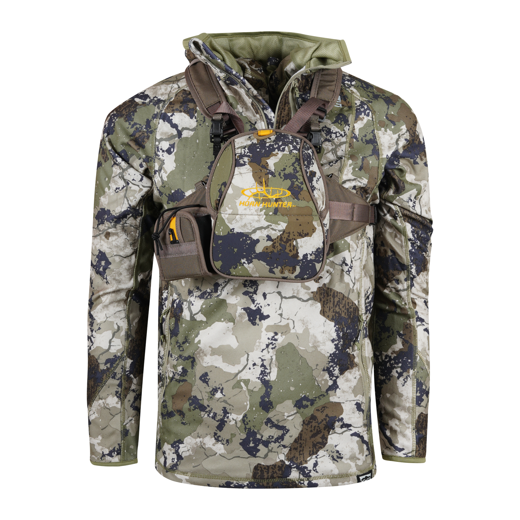 The Op-X Combo Bino Harness System by Horn Hunter includes a case for the rangefinder with Rain Fly. This new harness system will provide you with easy access to binos and rangefinder. Keep your optics secure and dust-free! The streamlined front binocular case has magnet closure. Includes additional rangefinder holder with included rain and dust fly. This great Binocular Hub system from Horn Hunter protects and keeps your binoculars close and secure while giving you quick access to your rangefinder. Weight: 2lbs