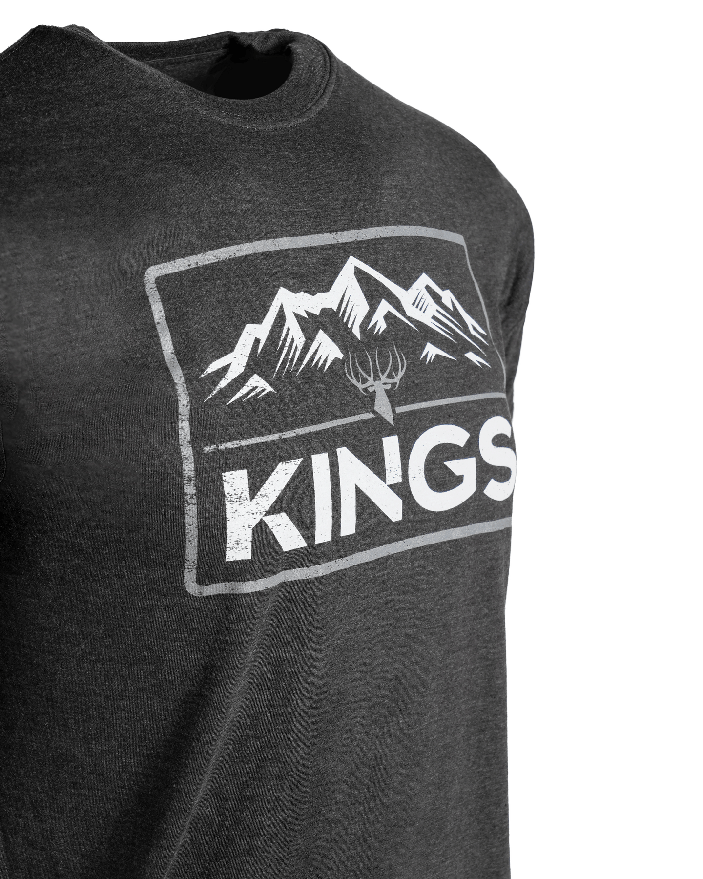 Screen printed Kings logo with rugged mountain artwork design.