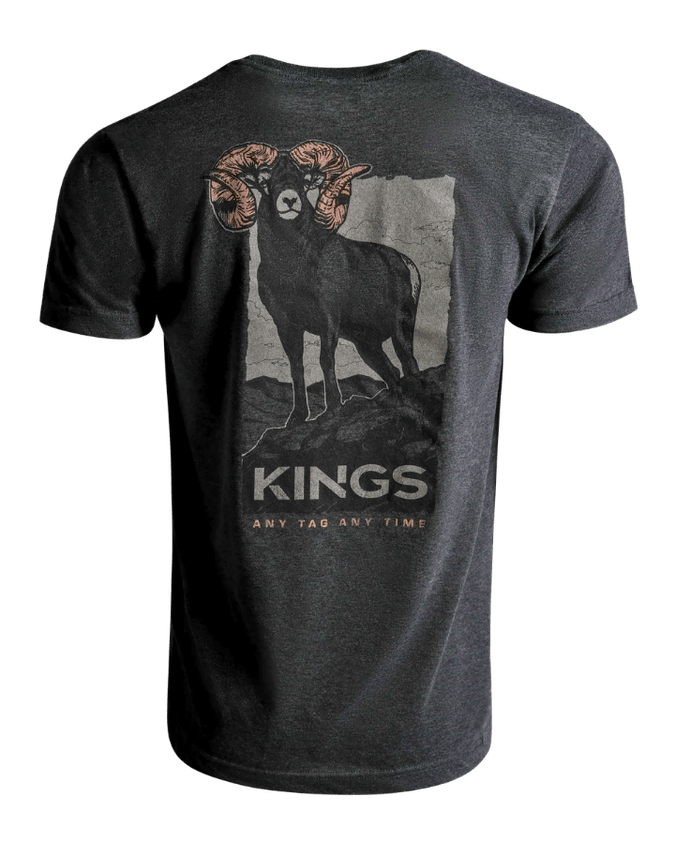 Screen printed Kings logo with trophy bighorn sheep back design.