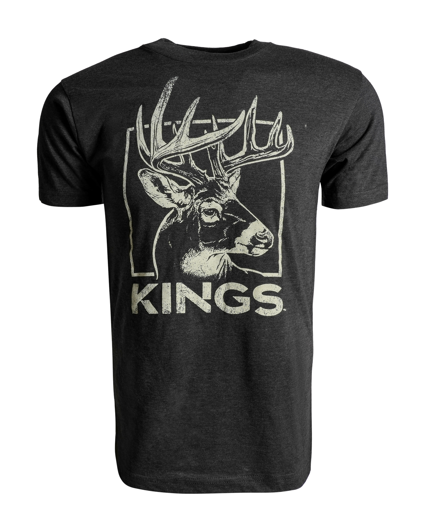 Screen printed Kings logo with hand drawn whitetail buck artwork design.