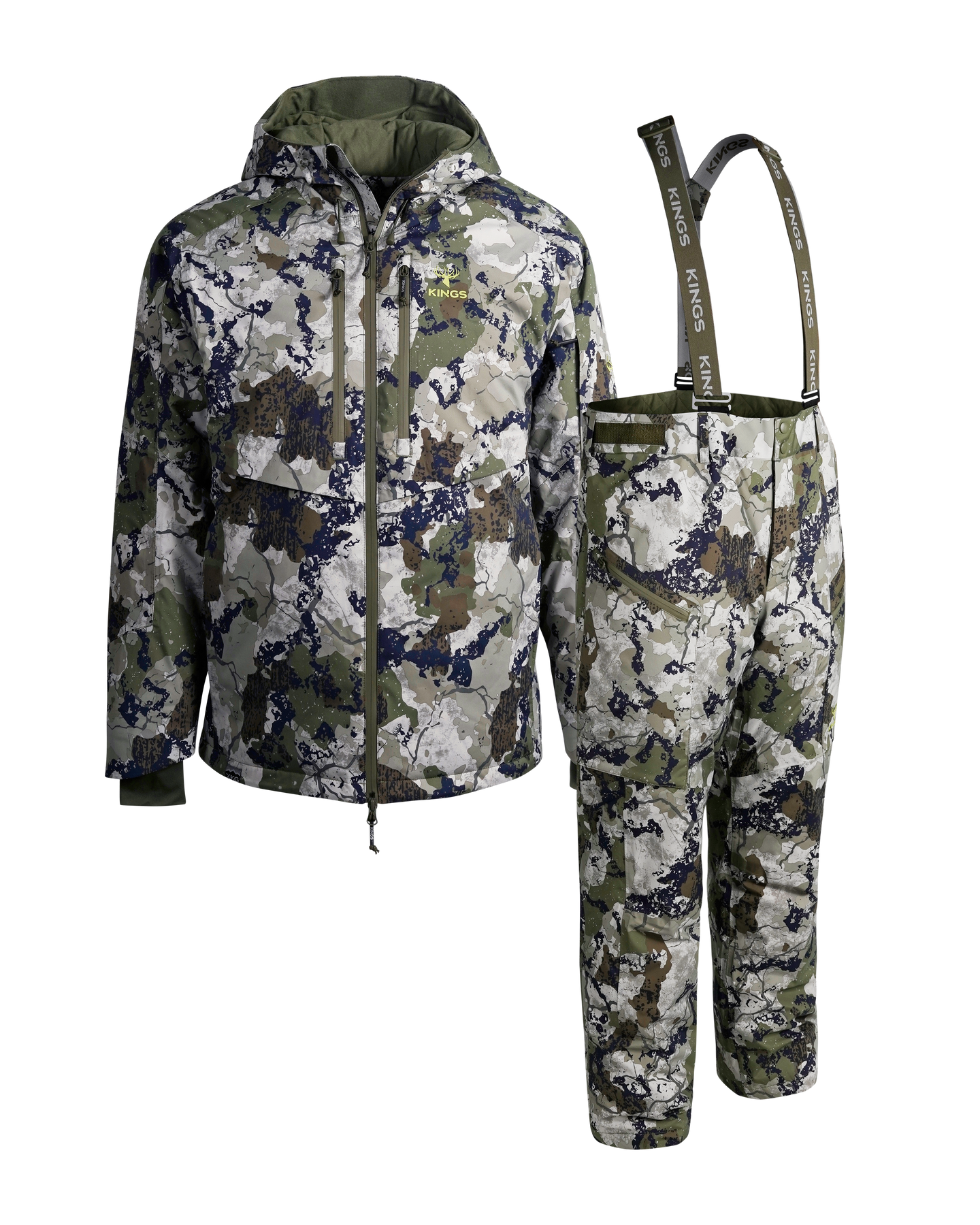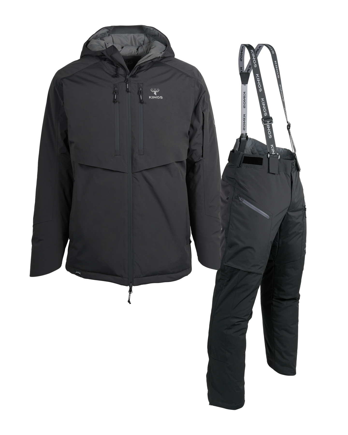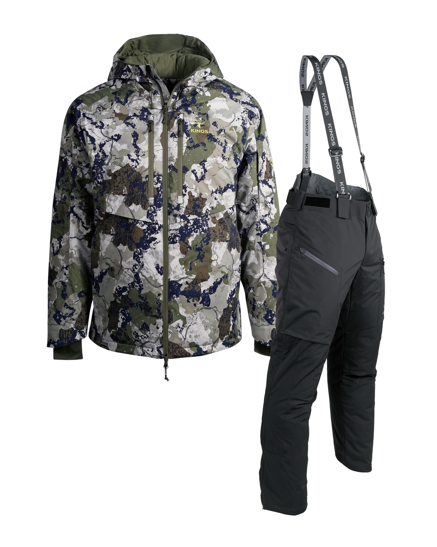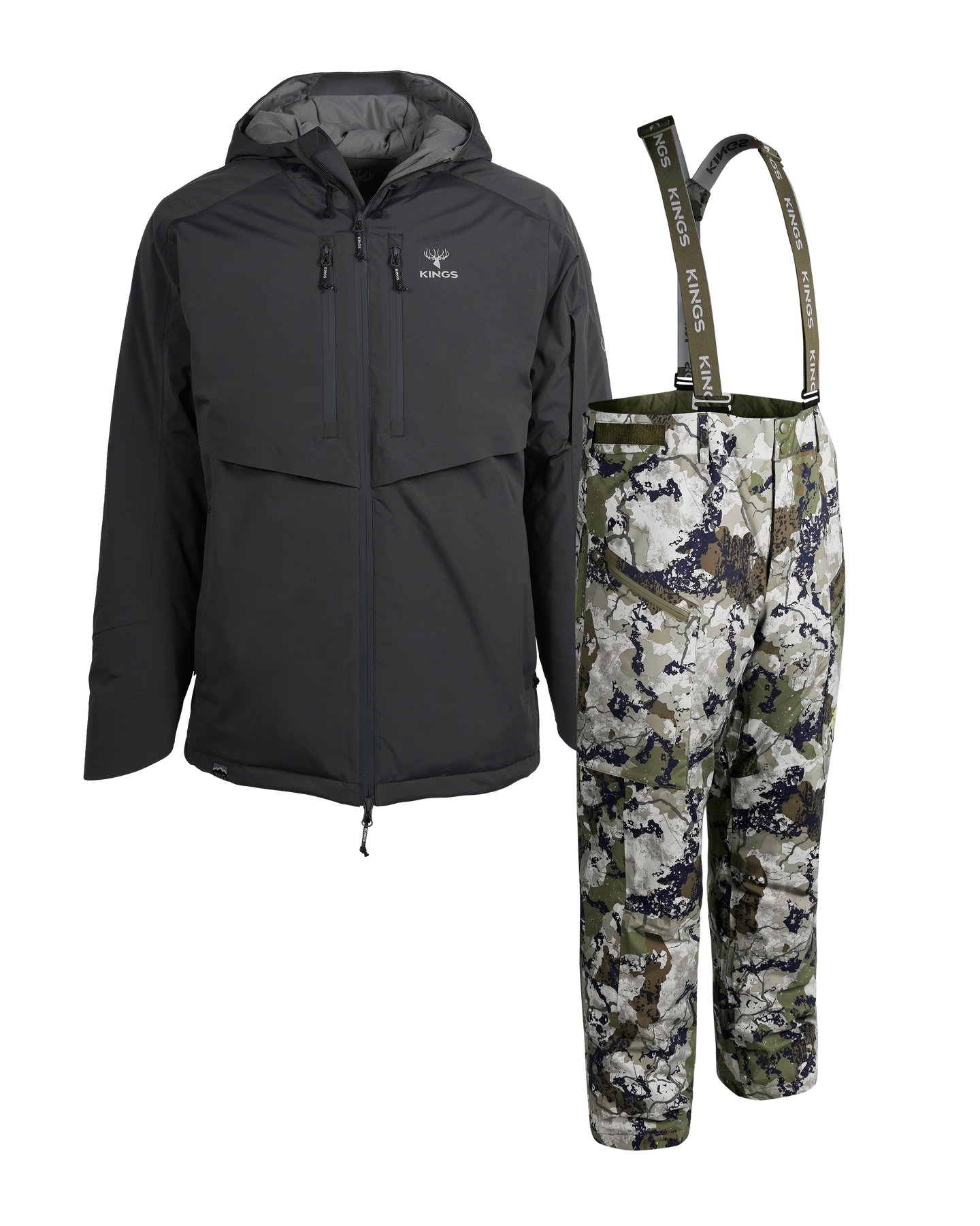 The XKG Expedition Down Jacket and Pant are built with hard face tri-laminate construction and lined with RDS certified down insulation. This combo has amazing warmth and weather blocking qualities. The jacket has extended storm cuffs, insulated hood, water resistant zippers, two side pockets, removable backpack suspenders, and drawstring adjustments. The pant has full-length side leg zippers, adjustable waist sizing, water resistant zippers, two over sized thigh pockets, removable backpack suspenders, and durable double button fly. These features provide superior warmth and protection for late-season hunts.