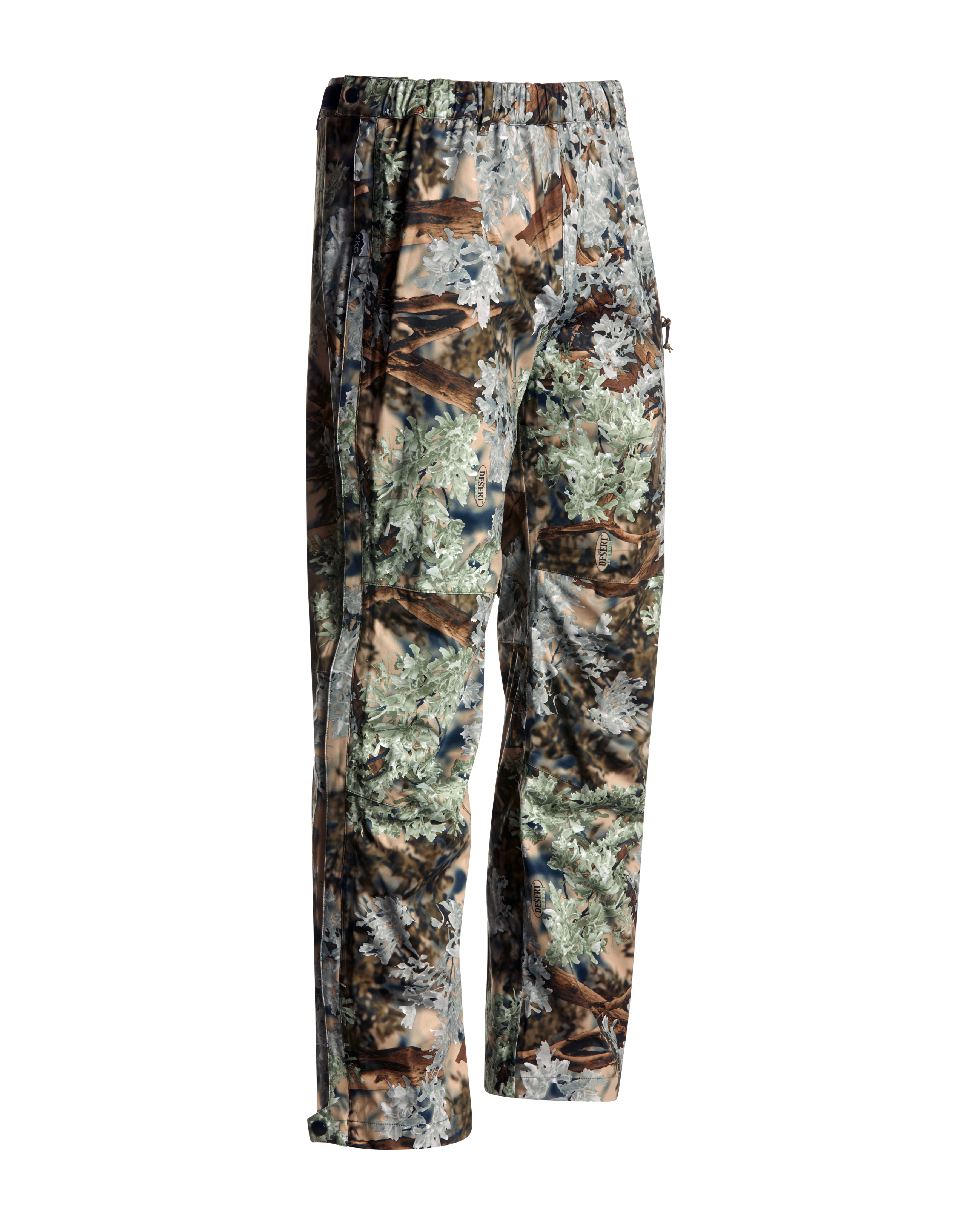 Full length 2-way side zippers with button snaps at the waist and ankle allow for quick access. Elastic waist with belt loops allows for flexible sizing. And an exterior pocket with watertight zipper allows for quick storage for small accessories.